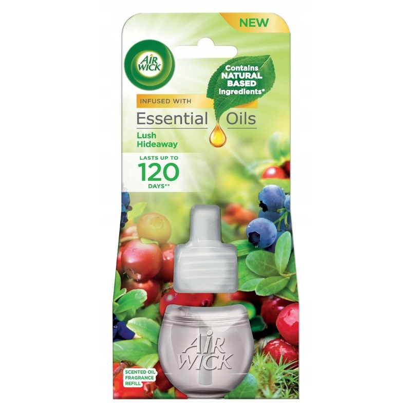 Air Wick Essential Oils Sveži otok je tekoča polnitev za električni osvežilec zraka, ki vaš dom preplavi s čisto, naravno dišavo zelišč, mete in subtilnih jagodičastih not. Uživajte v vonju, navdihnjenem z naravo, ki zagotavlja prijetno vzdušje in dolgotrajno svežino do 120 dni (pri najnižji nastavitvi).