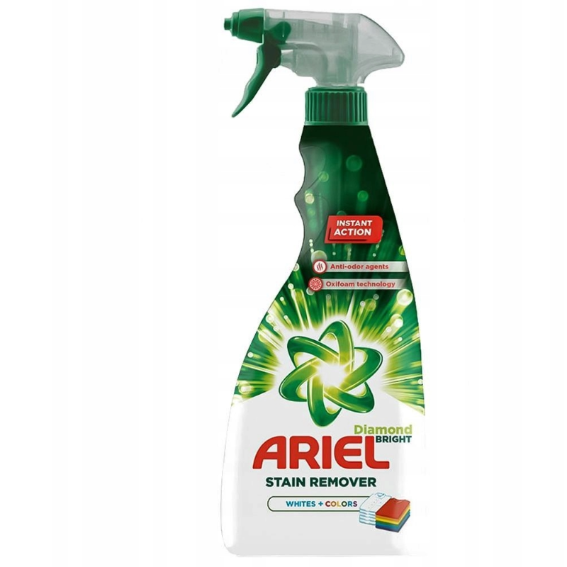 Ariel odstranjevalec madežev je nepogrešljiv pomočnik v boju proti madežem. Vaša oblačila bodo vedno brezhibno čista in sveža!
