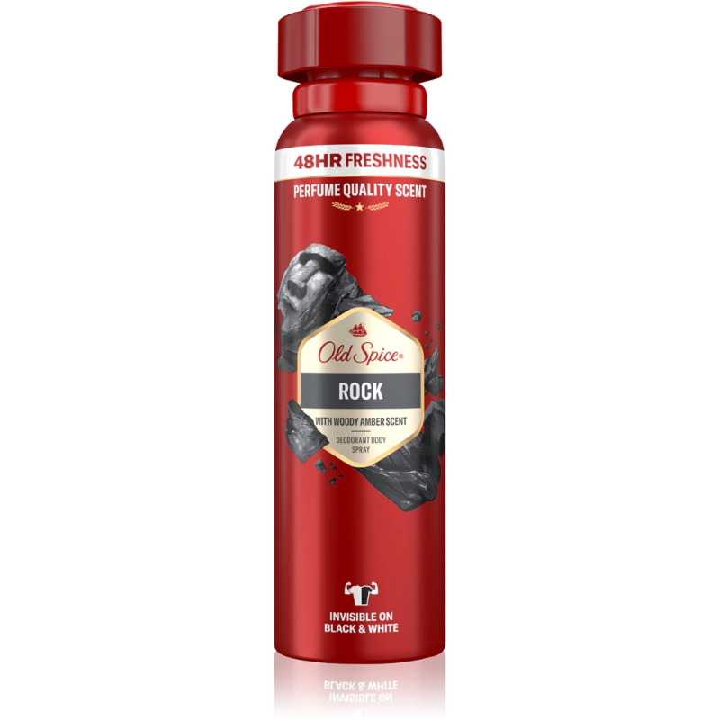 Old Spice Rock antiperspirant za moške nudi do 24 ur zanesljive zaščite pred potenjem in neprijetnim vonjem. S svojo močno, samozavestno dišavo je ustvarjen za moškega, ki ne popušča – ne glede na izziv. Sprej se hitro suši, ne pušča madežev in poskrbi, da ostanete sveži skozi ves dan.